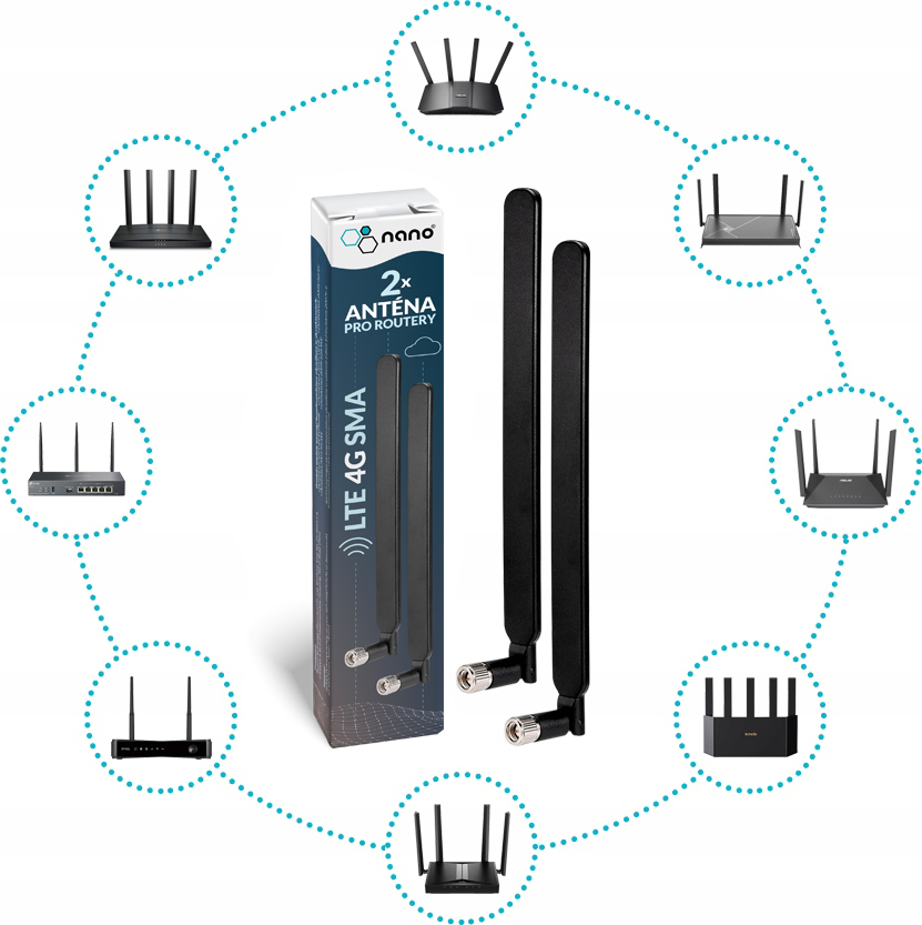 Anténa je kompatibilná s mnohými LTE routermi s konektorom SMA, takže: