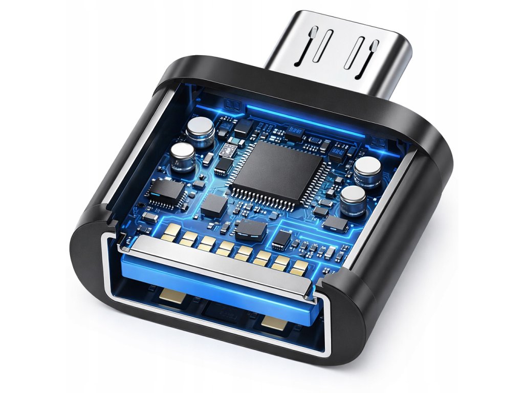 Funguje v štandarde OTG (USB On-The-Go) — vďaka tomu mobilné zariadenie automaticky „vidí“ a komunikuje s pripojeným príslušenstvom bez potreby ďalších aplikácií.