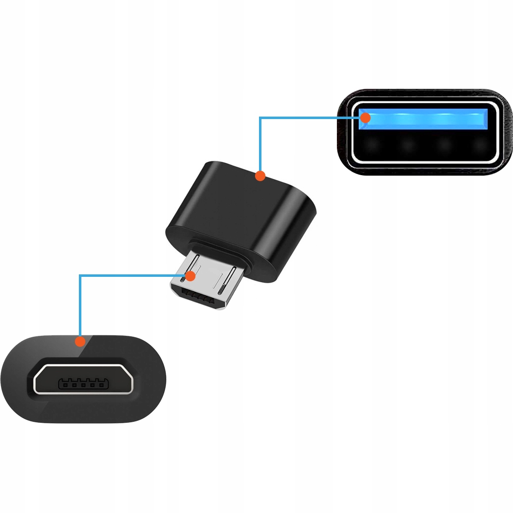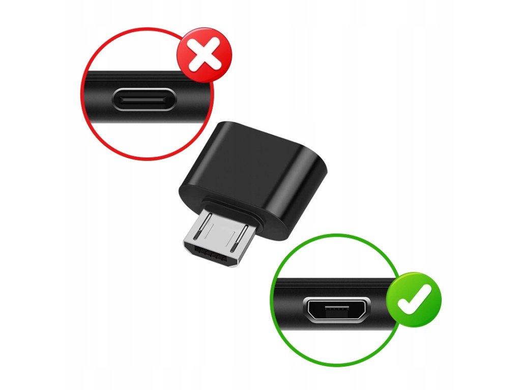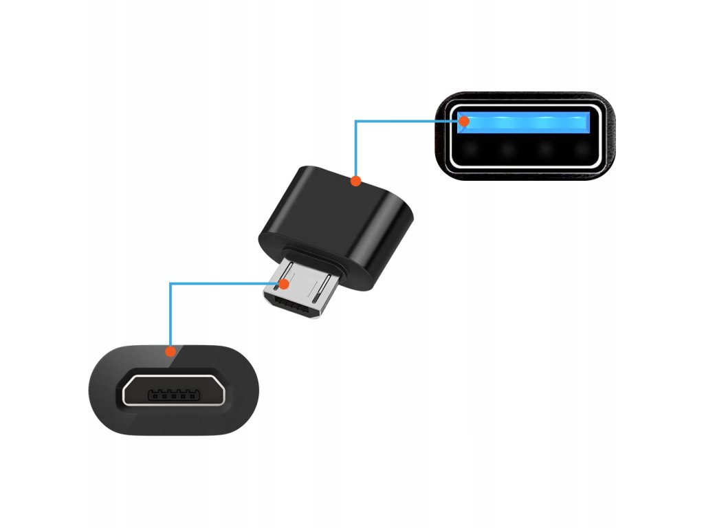 Adaptér USB Micro B → USB-A OTG je malý, praktický doplnok, ktorý umožňuje pripojiť štandardné USB zariadenia (napr. USB kľúč, klávesnicu, myš, gamepad) k smartfónu, tabletu alebo počítaču s konektorom USB Micro B.
