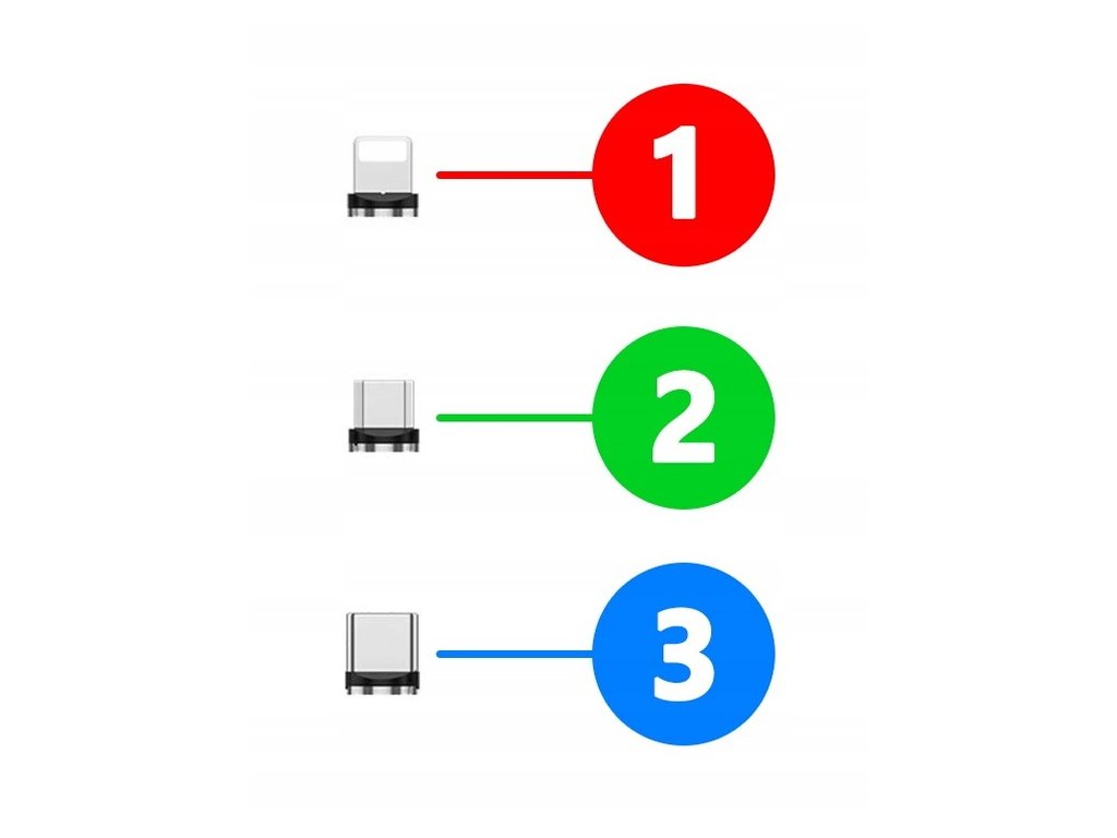 3 indukčné nabíjacie koncovky (Lightning – Apple, MicroUSB, USB-C) – umožňujú bezdrôtovo nabíjať akýkoľvek smartfón, aj ten bez podpory bezdrôtového nabíjania