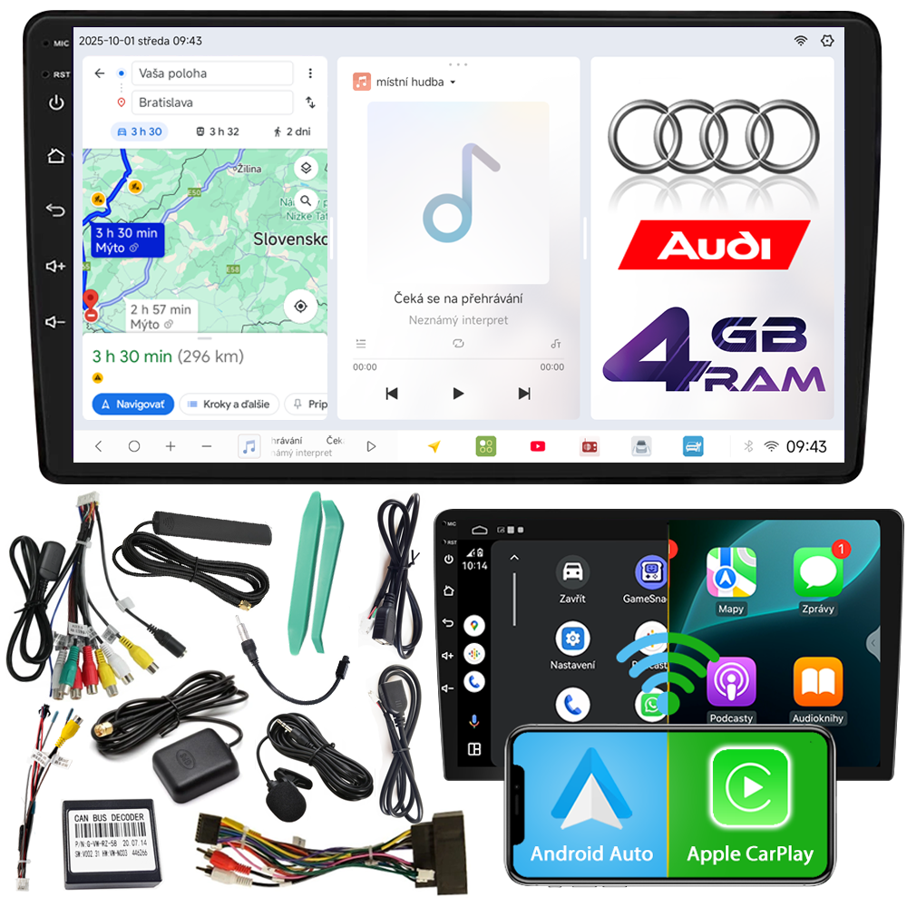 ✔️ Android Auto a Apple CarPlay – prístup k aplikáciám ako WhatsApp, Messenger, Spotify, YouTube, Deezer, Amazon Music