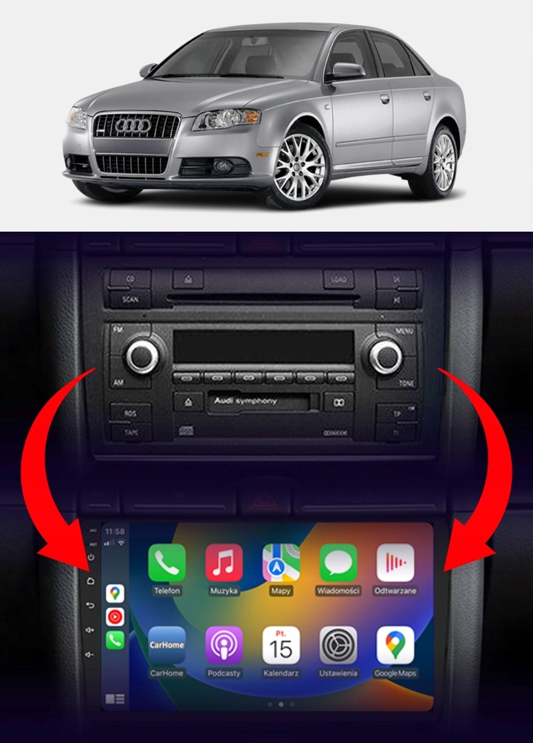 Rádio určené a plne prispôsobené na používanie vo vozidle Audi A4 B7 2004-2007