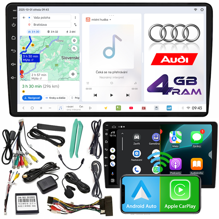 ✔️ Android Auto a Apple CarPlay – prístup k aplikáciám ako WhatsApp, Messenger, Spotify, YouTube, Deezer, Amazon Music