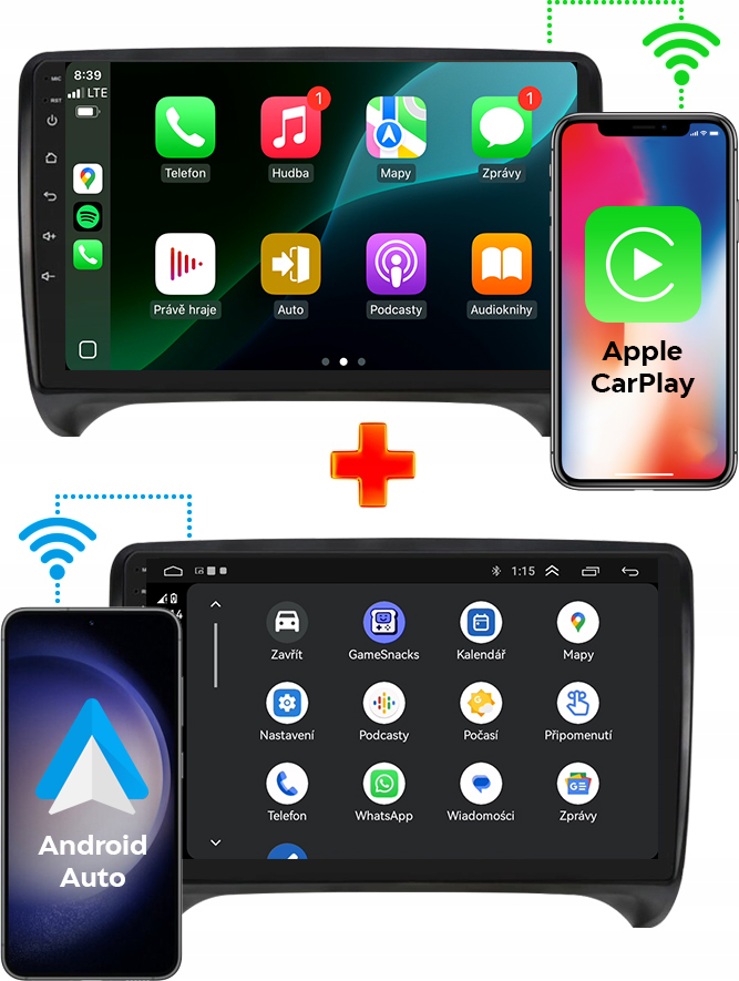 ✔️ Android Auto a Apple CarPlay – prístup k aplikáciám ako WhatsApp, Messenger, Spotify, YouTube, Deezer, Amazon Music