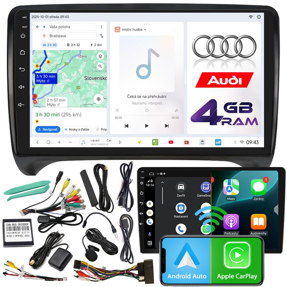 AUTORÁDIO NCS D9 AUDI TT 8J 2006-2013 ANDROID NAVIGÁCIA 4GB LTE