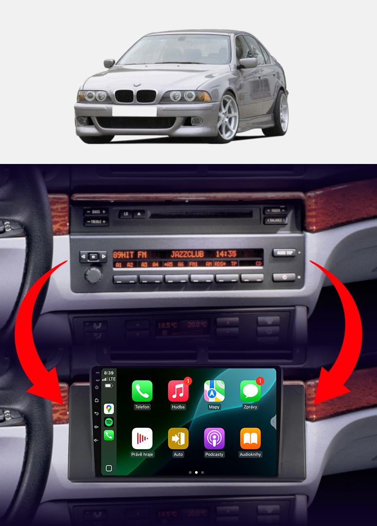 Rádio určené a plne prispôsobené na používanie vo vozidle BMW E39 1995-2004