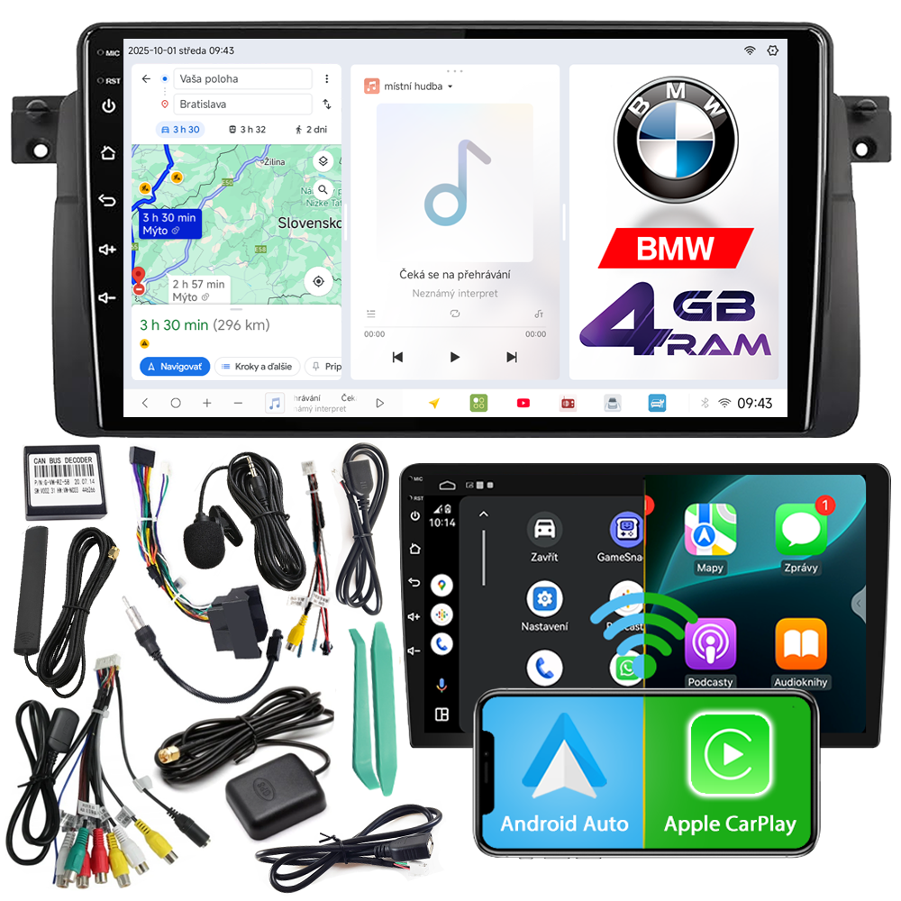 AUTORÁDIO NCS D9 BMW E46 1998-2005 ANDROID NAVIGÁCIA 4GB LTE
