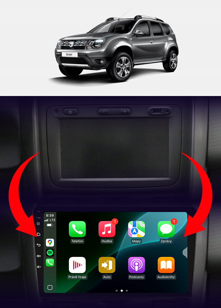 Rádio určené a plne prispôsobené na používanie vo vozidle DACIA DUSTER 2014-2017