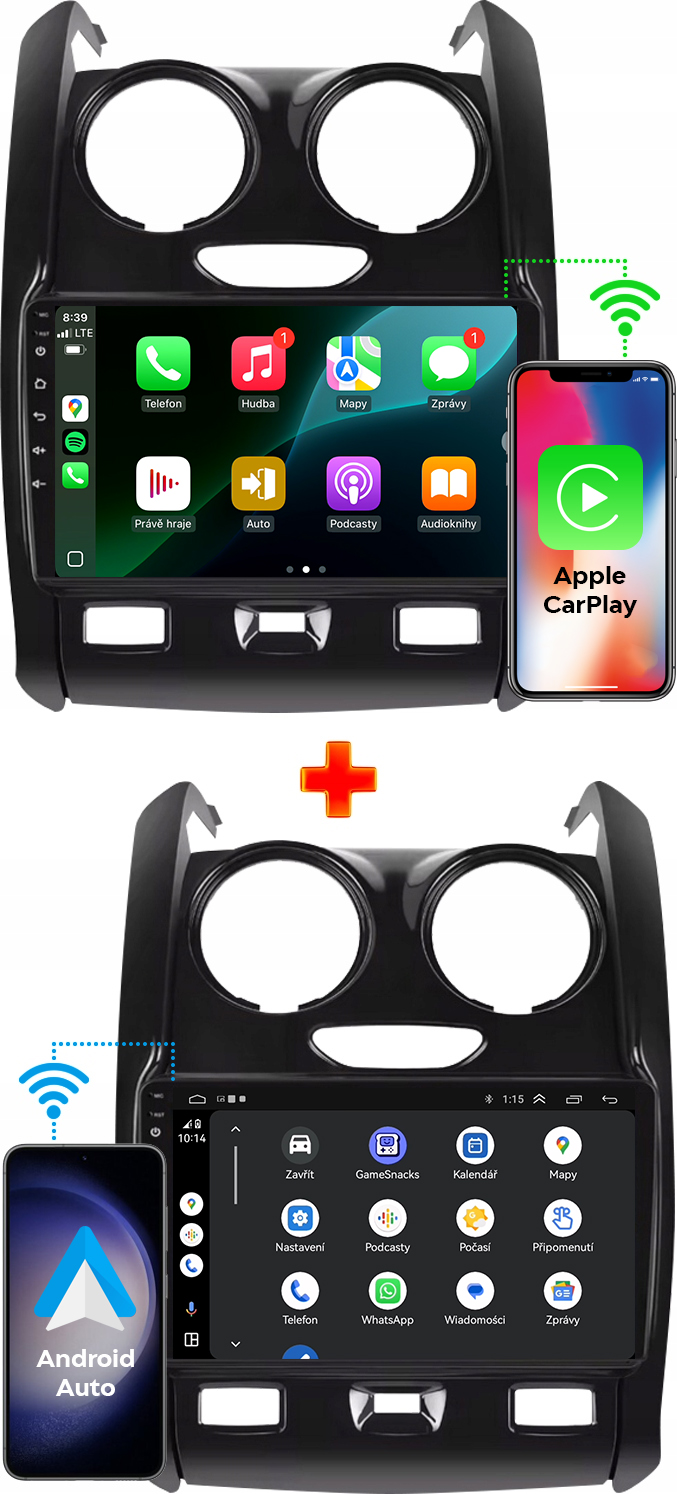 ✔️ Android Auto a Apple CarPlay – prístup k aplikáciám ako WhatsApp, Messenger, Spotify, YouTube, Deezer, Amazon Music