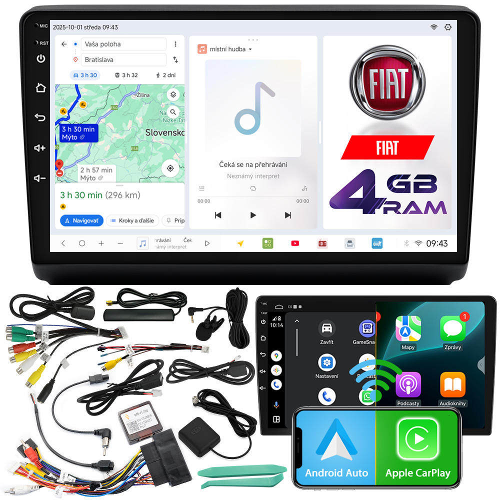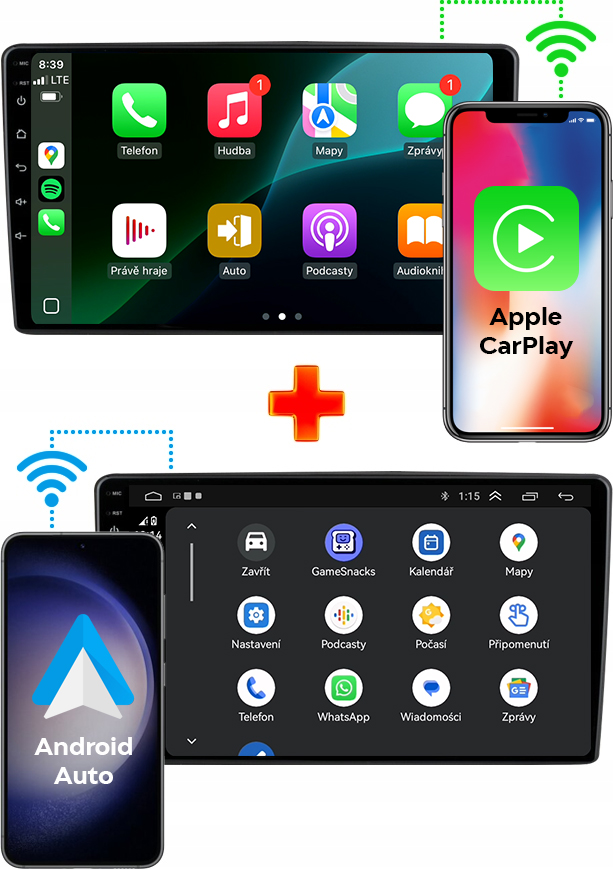 ✔️ Android Auto a Apple CarPlay – prístup k aplikáciám ako WhatsApp, Messenger, Spotify, YouTube, Deezer, Amazon Music