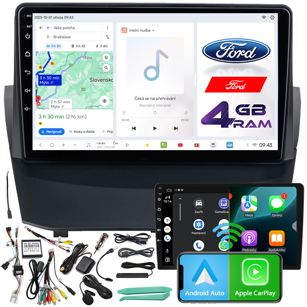 AUTORÁDIO NCS D9 FORD FIESTA Mk7 2009-2017 ANDROID NAVIGÁCIA 4GB LTE
