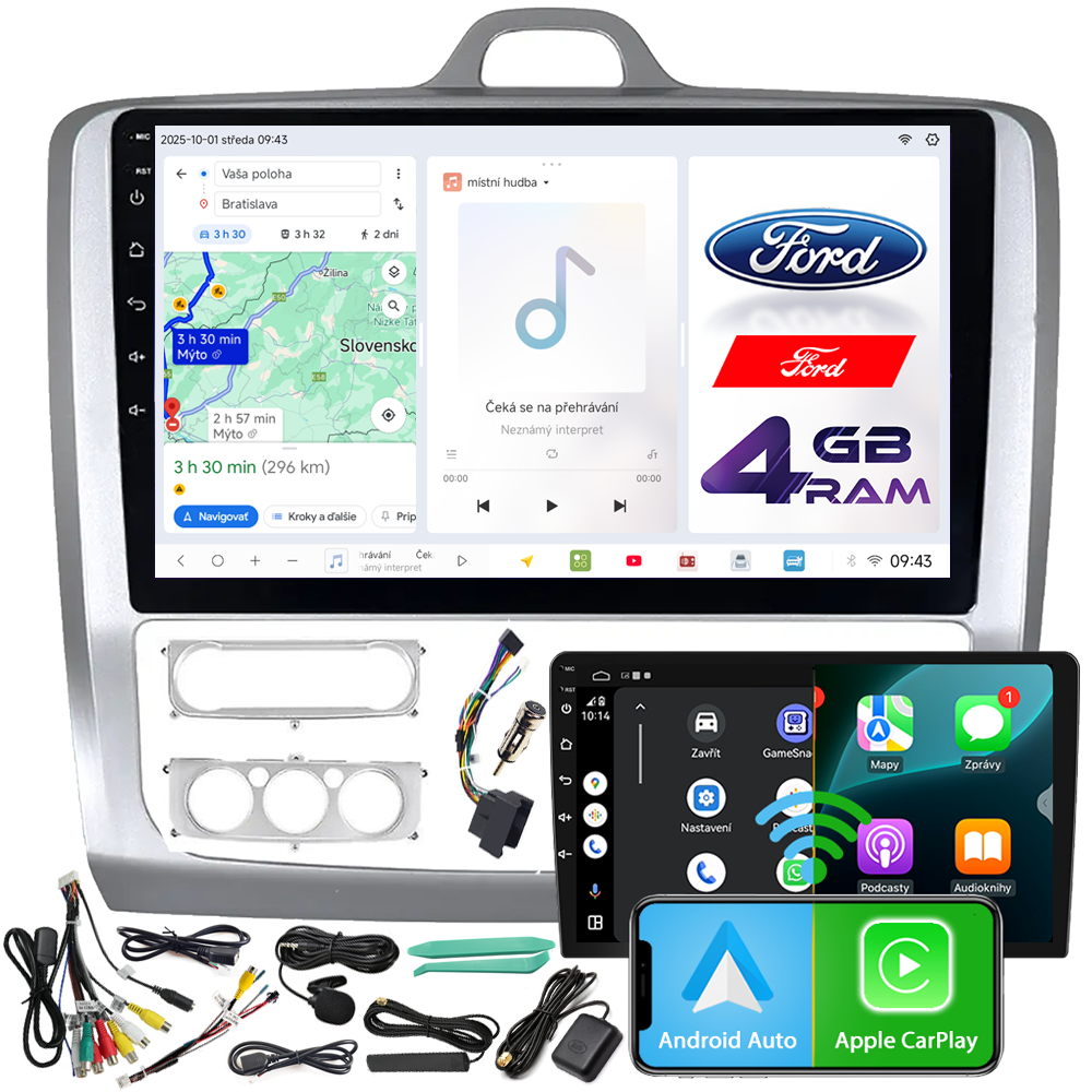AUTORÁDIO NCS D9 FORD FOCUS Mk2 2004-2011 ANDROID NAVIGÁCIA 4GB LTE