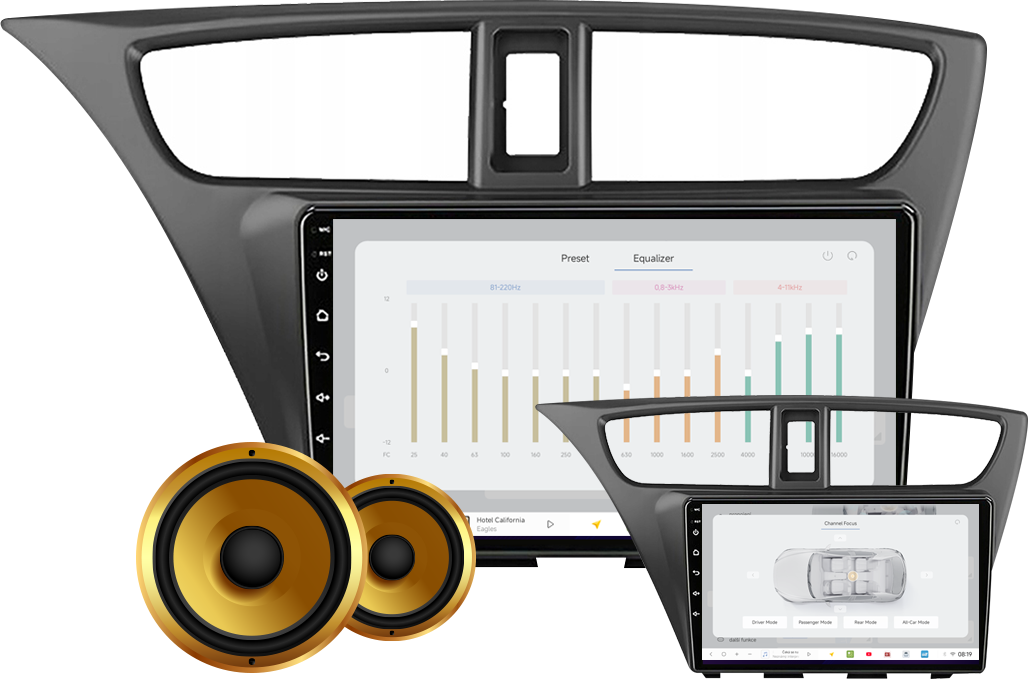 ✔️ Intuitívne ovládanie zvuku: balance (ľavý/pravý kanál) a fader (predok/zozadu).