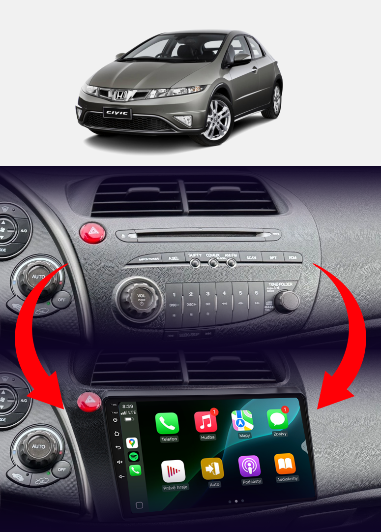 Rádio určené a plne prispôsobené na používanie vo vozidle Honda Civic VIII 2006-2011