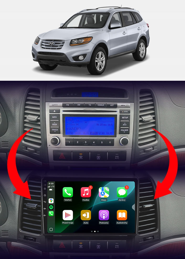 Rádio určené a plne prispôsobené na používanie vo vozidle HYUNDAI SANTA FE 2006-2012