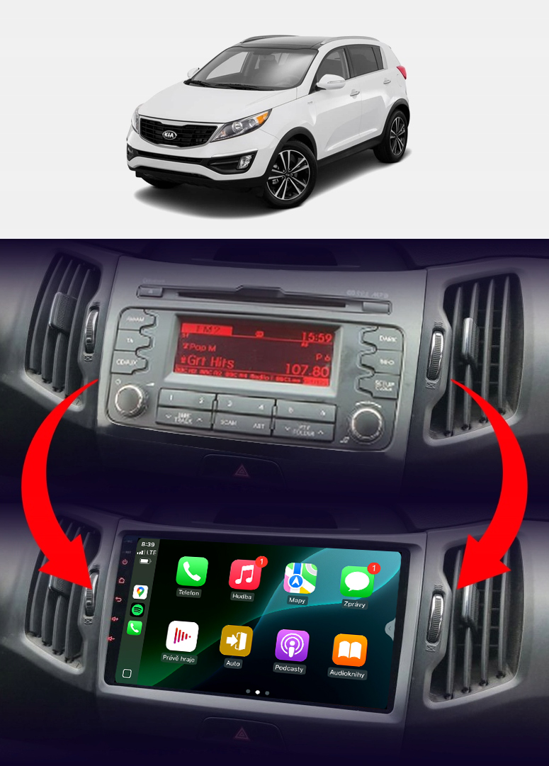 Rádio určené a plne prispôsobené na používanie vo vozidle KIA SPORTAGE 3 III 2010-2015