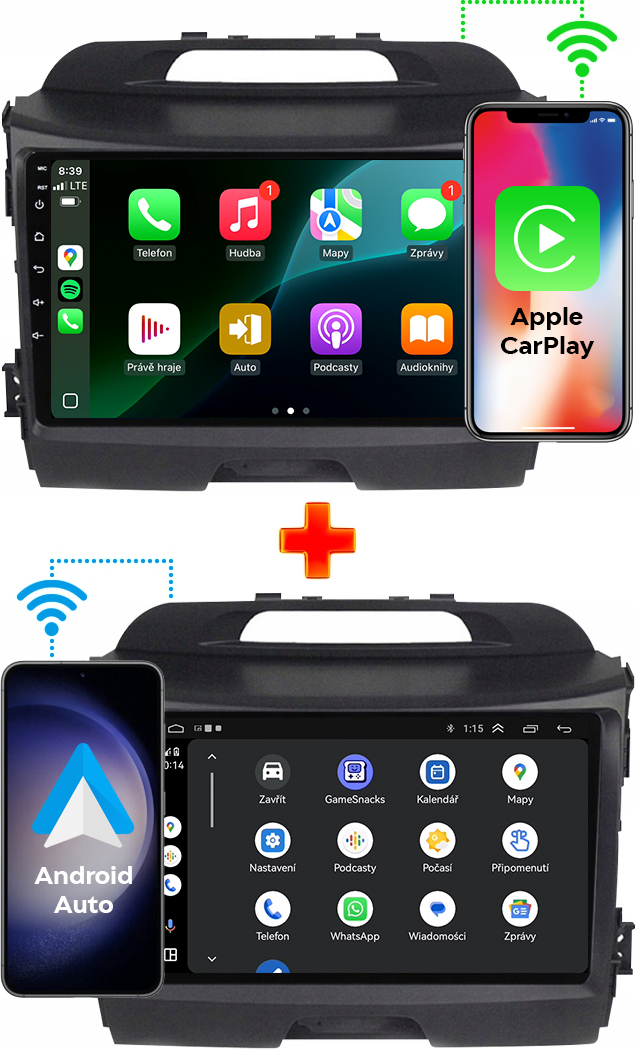 ✔️ Android Auto a Apple CarPlay – prístup k aplikáciám ako WhatsApp, Messenger, Spotify, YouTube, Deezer, Amazon Music
