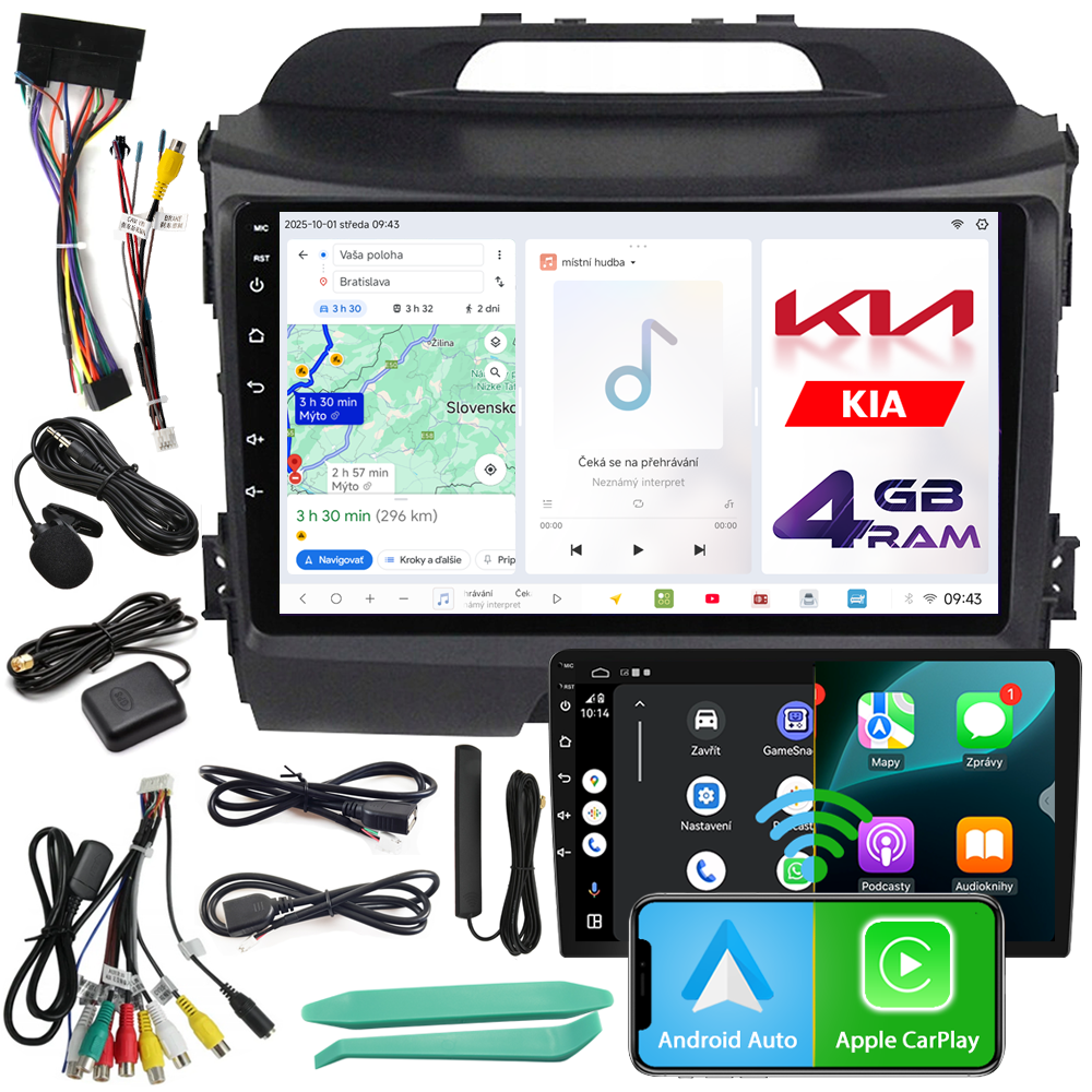 AUTORÁDIO NCS D9 KIA SPORTAGE 3 III 2010-2015 ANDROID NAVIGÁCIA 4GB LTE