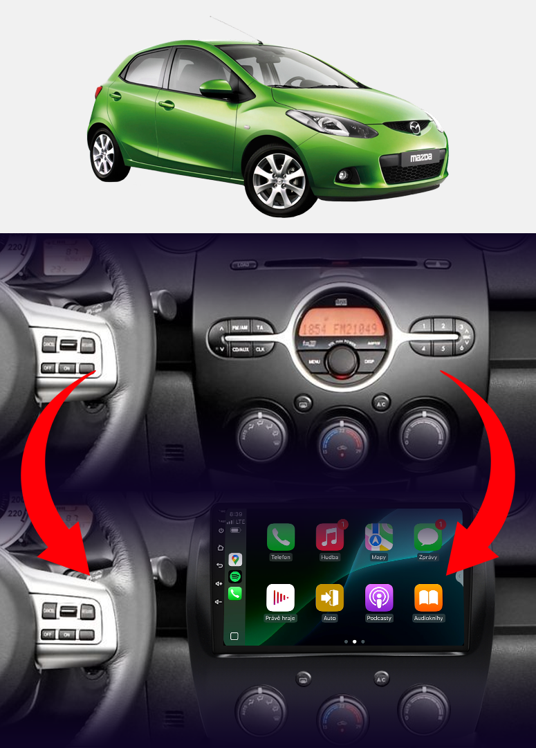 Rádio určené a plne prispôsobené na používanie vo vozidle Mazda 2 2007-2014