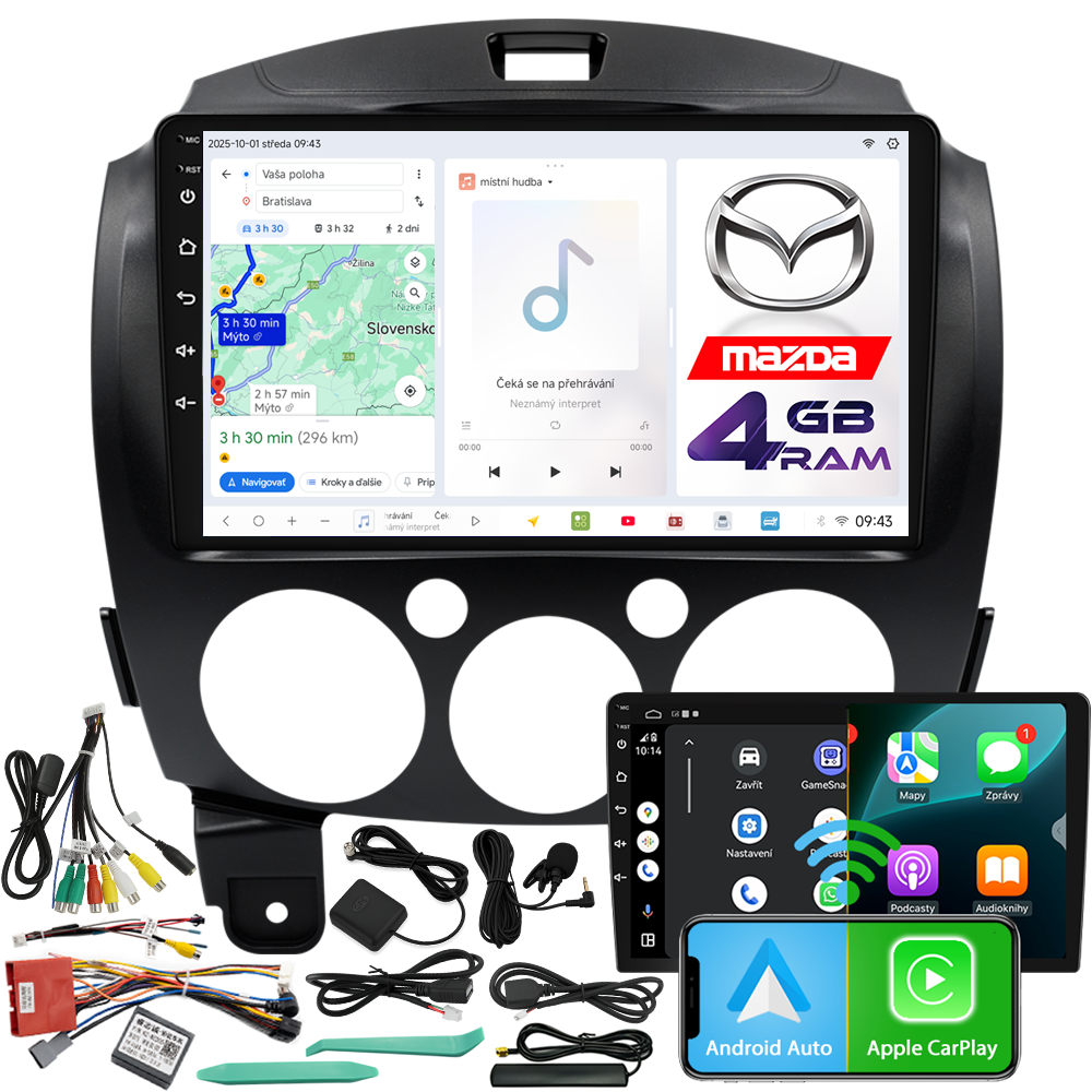 AUTORÁDIO NCS D9 Mazda 2 2007-2014 ANDROID NAVIGÁCIA 4GB LTE