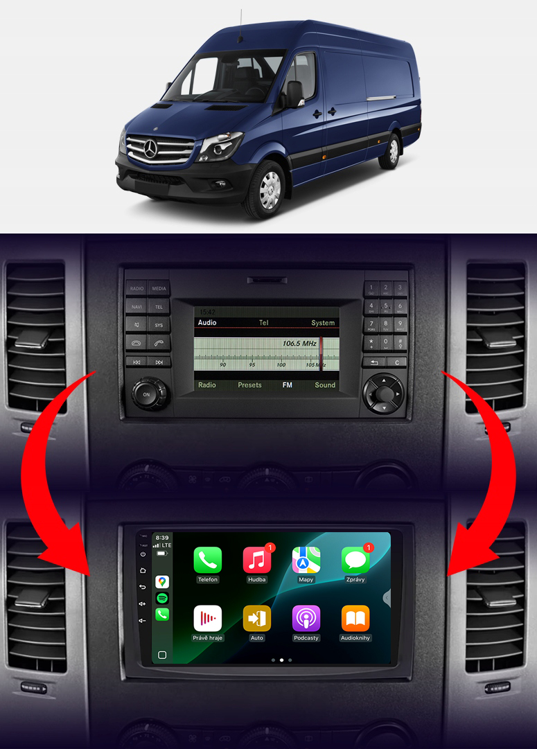 Rádio určené a plne prispôsobené na používanie vo vozidle Mercedes-Benz Sprinter W906 2006-2019