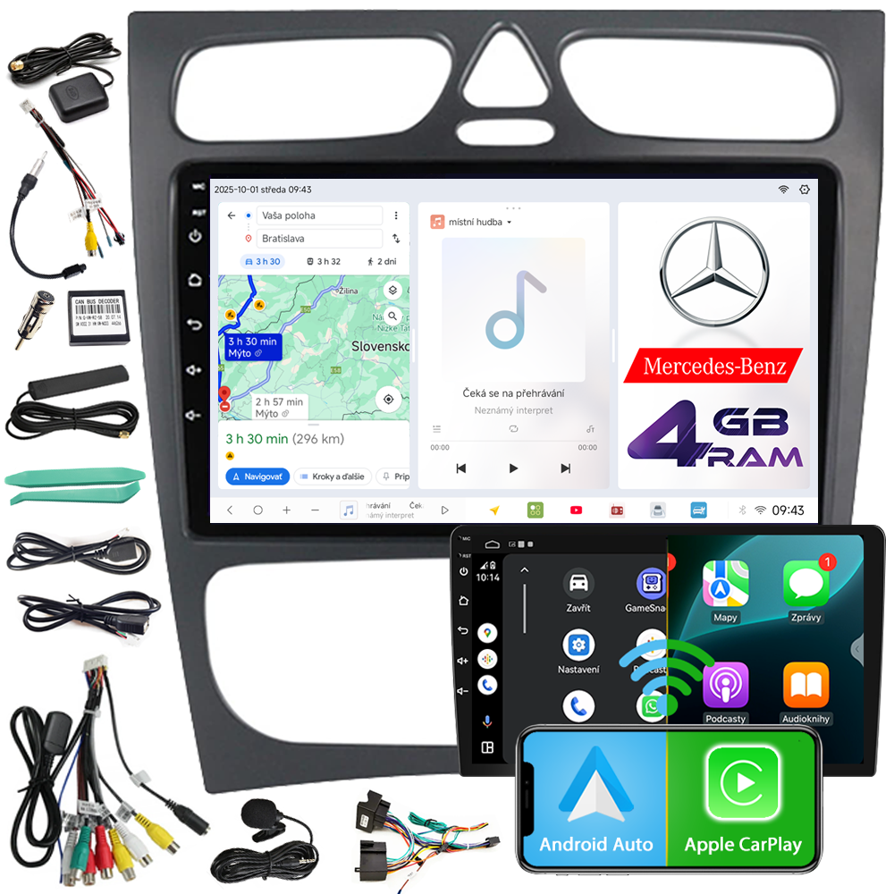 AUTORÁDIO NCS D9 MERCEDES-BENZ W203 2000-2007 ANDROID NAVIGÁCIA 4GB LTE