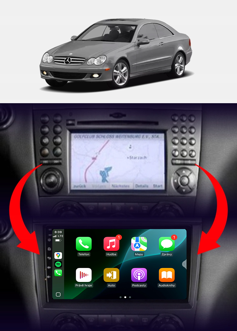 Rádio určené a plne prispôsobené na používanie vo vozidle MERCEDES-BENZ W203 W209 2000-2007
