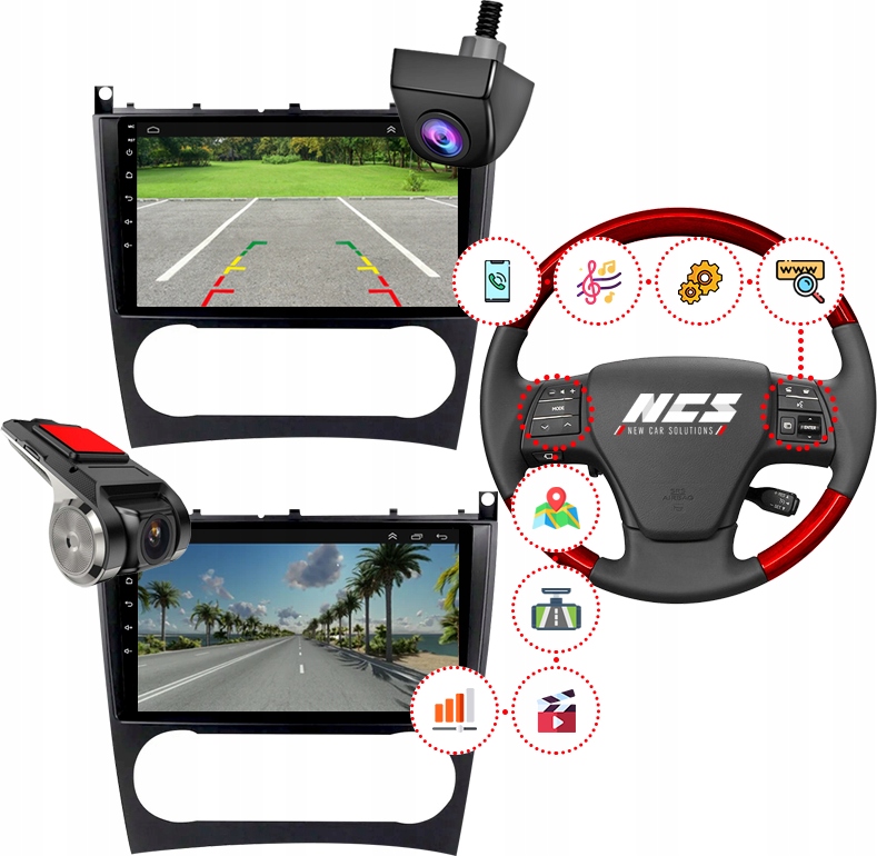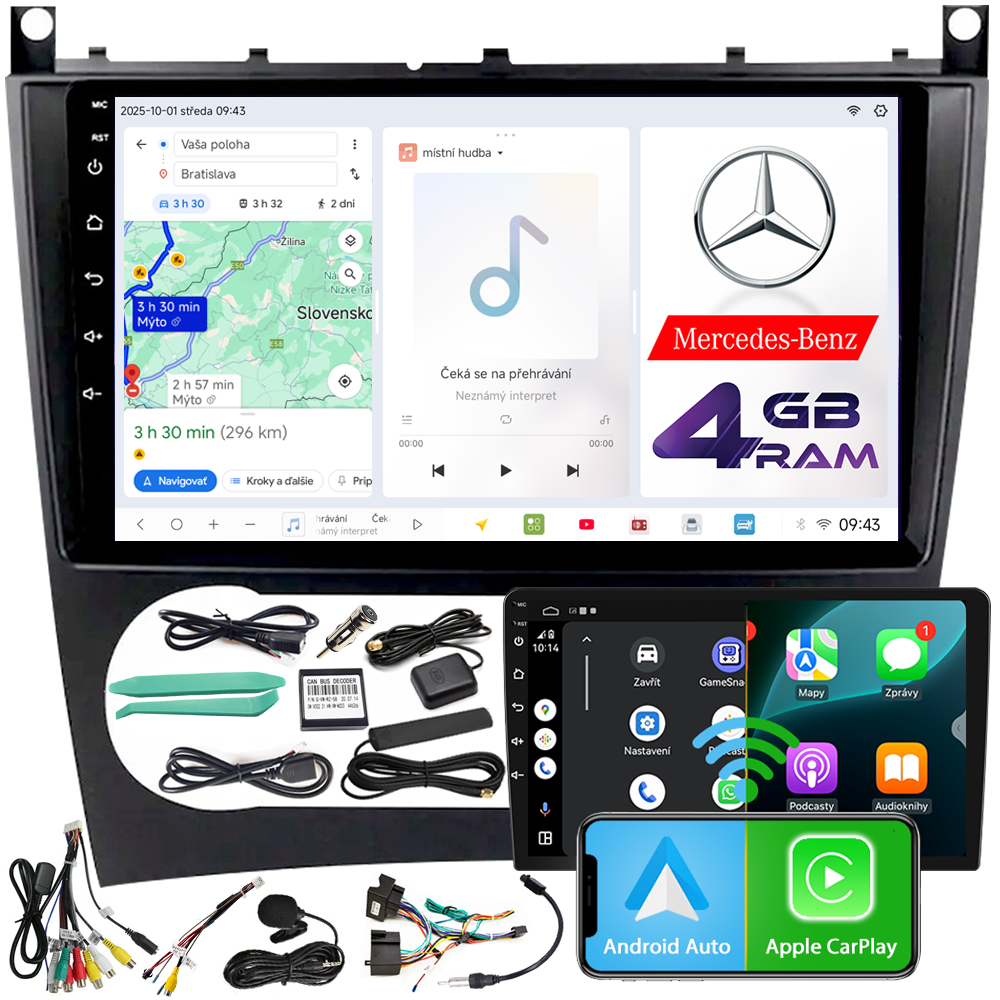 AUTORÁDIO NCS D9 MERCEDES-BENZ W203 W209 2000-2007 ANDROID NAVIGÁCIA 4GB LTE