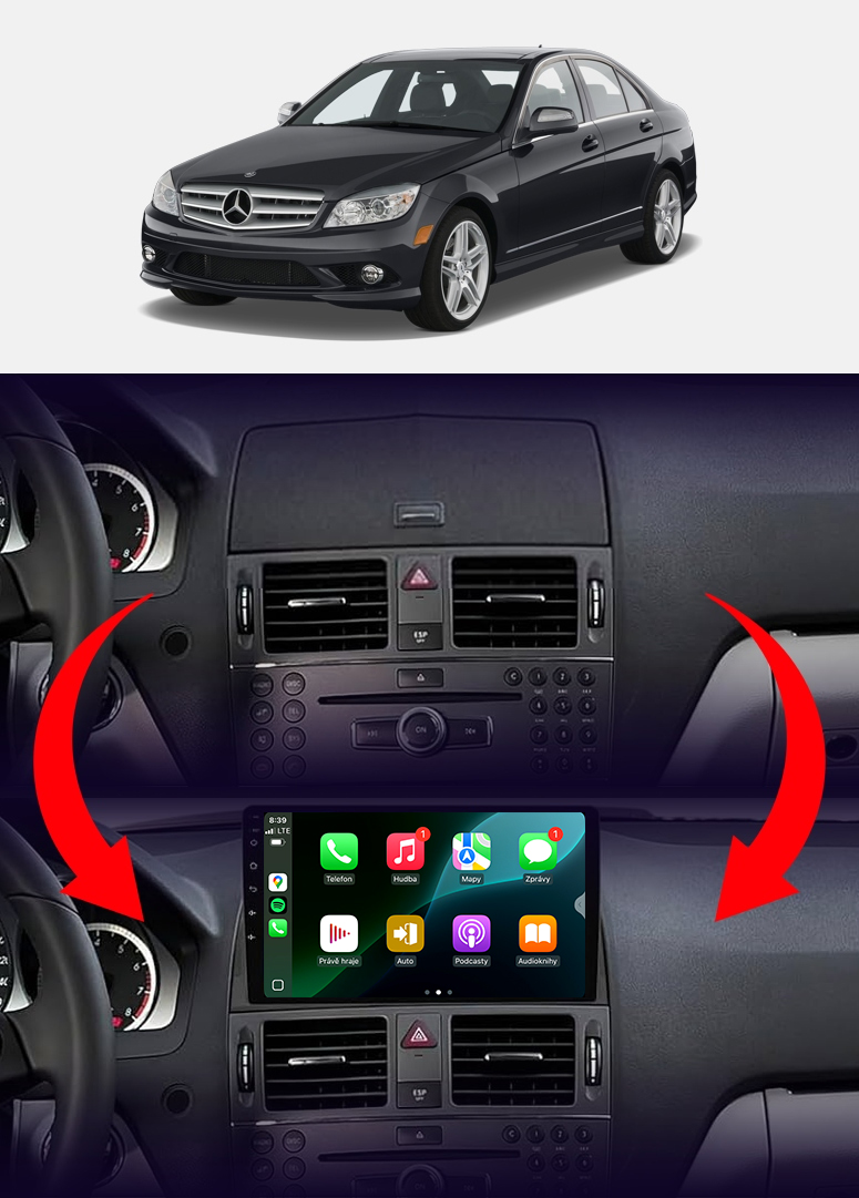 AUTORÁDIO NCS D9 MERCEDES-BENZ W204 2007-2010 ANDROID NAVIGÁCIA 4GB LTE