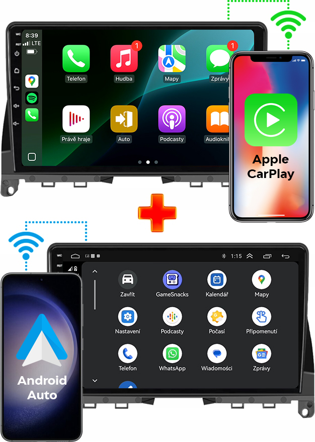 ✔️ Android Auto a Apple CarPlay – prístup k aplikáciám ako WhatsApp, Messenger, Spotify, YouTube, Deezer, Amazon Music