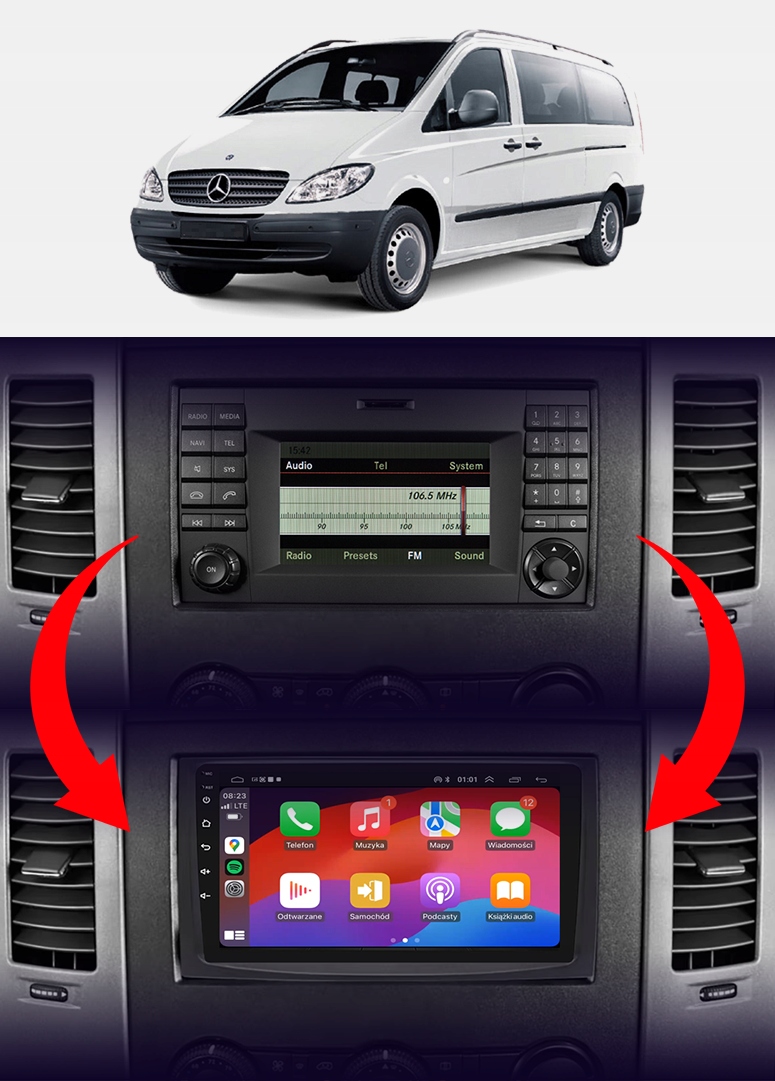 Rádio určené a plne prispôsobené na používanie vo vozidle MERCEDES VITO W639 2003-2014