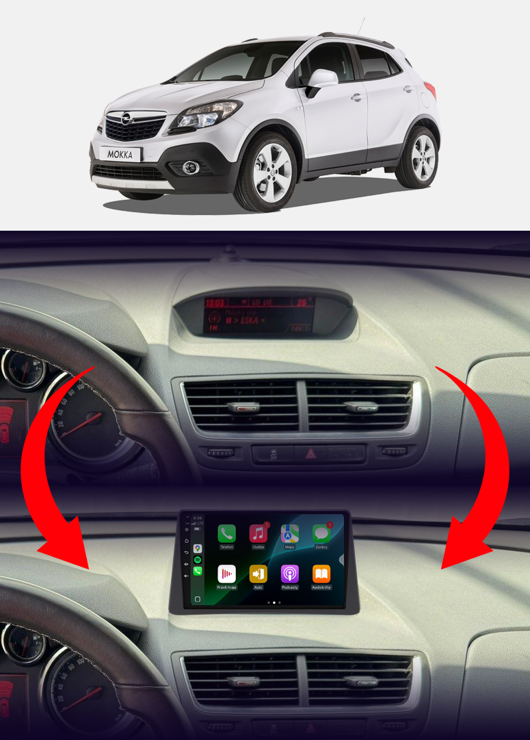 Rádio určené a plne prispôsobené na používanie vo vozidle Opel Mokka 2012-2016