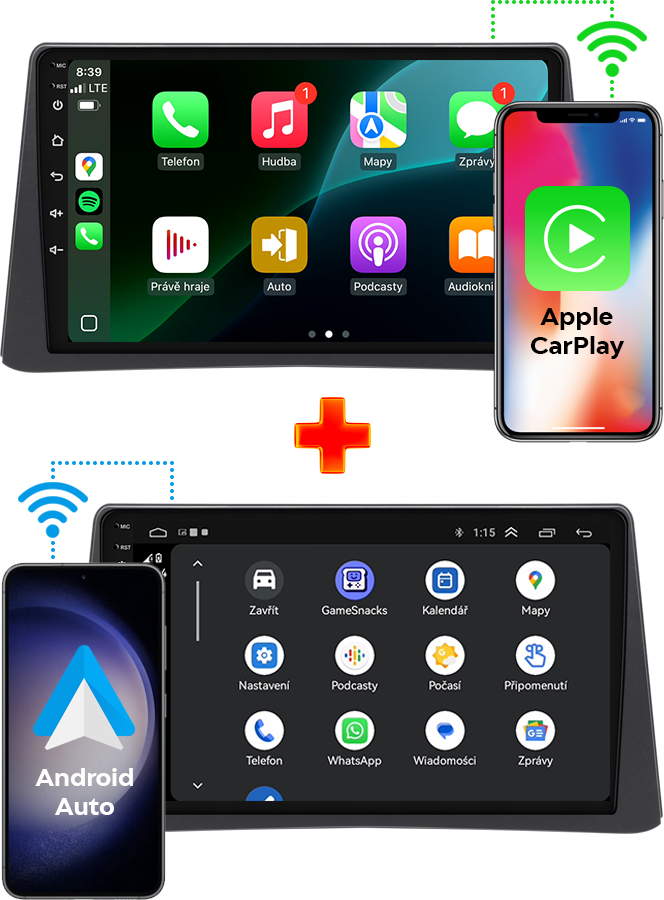 ✔️ Android Auto a Apple CarPlay – prístup k aplikáciám ako WhatsApp, Messenger, Spotify, YouTube, Deezer, Amazon Music