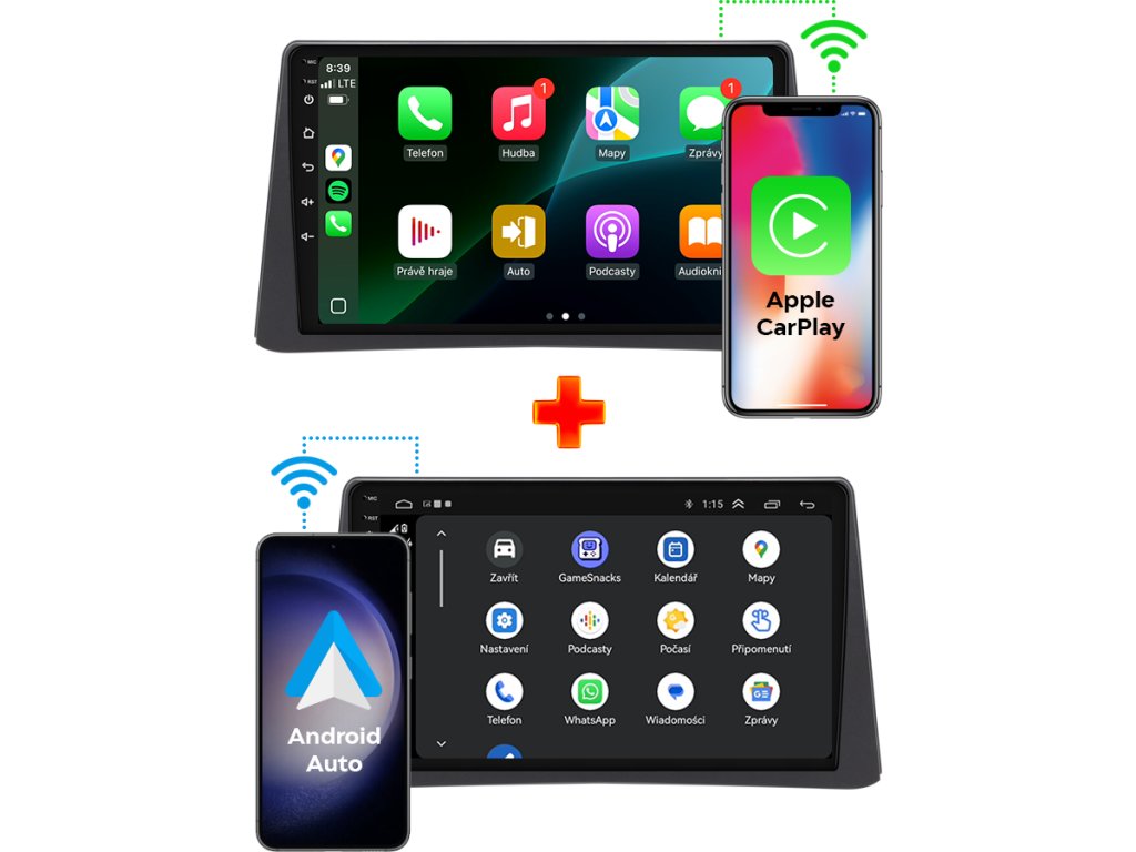 ✔️ Android Auto a Apple CarPlay – prístup k aplikáciám ako WhatsApp, Messenger, Spotify, YouTube, Deezer, Amazon Music