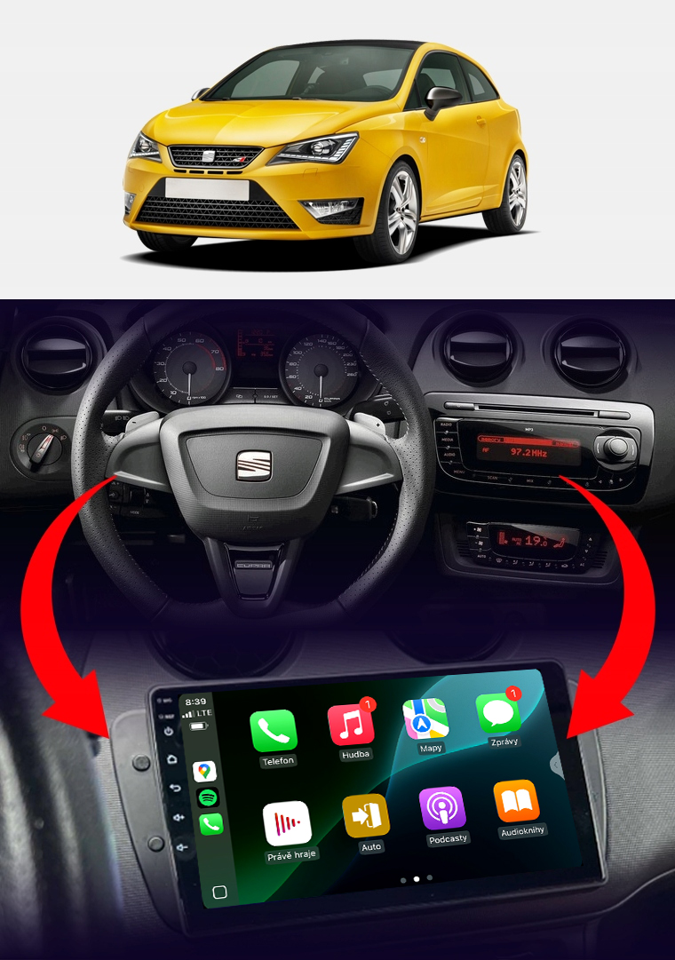 Rádio určené a plne prispôsobené na používanie vo vozidle Seat Ibiza IV 2008-2017