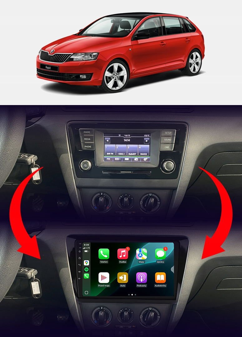 Rádio určené a plne prispôsobené na používanie vo vozidle SKODA RAPID 2012-2020