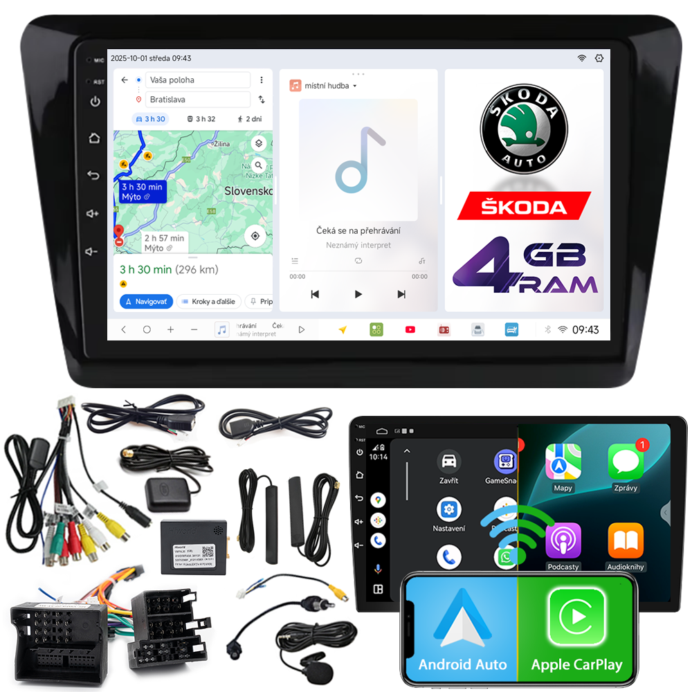 AUTORÁDIO NCS D9 SKODA RAPID 2012-2020 ANDROID NAVIGÁCIA 4GB LTE