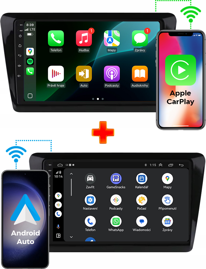 ✔️ Android Auto a Apple CarPlay – prístup k aplikáciám ako WhatsApp, Messenger, Spotify, YouTube, Deezer, Amazon Music