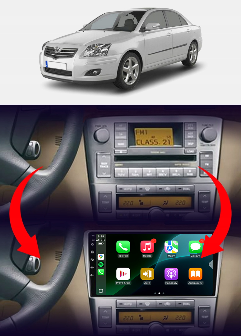 Rádio určené a plne prispôsobené na používanie vo vozidle TOYOTA AVENSIS 2002-2009