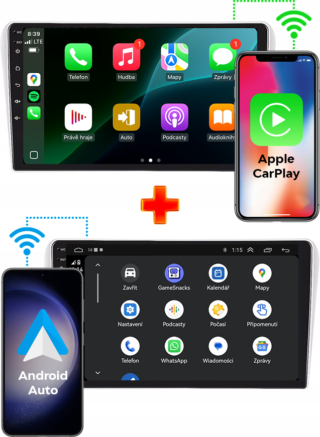 ✔️ Android Auto a Apple CarPlay – prístup k aplikáciám ako WhatsApp, Messenger, Spotify, YouTube, Deezer, Amazon Music