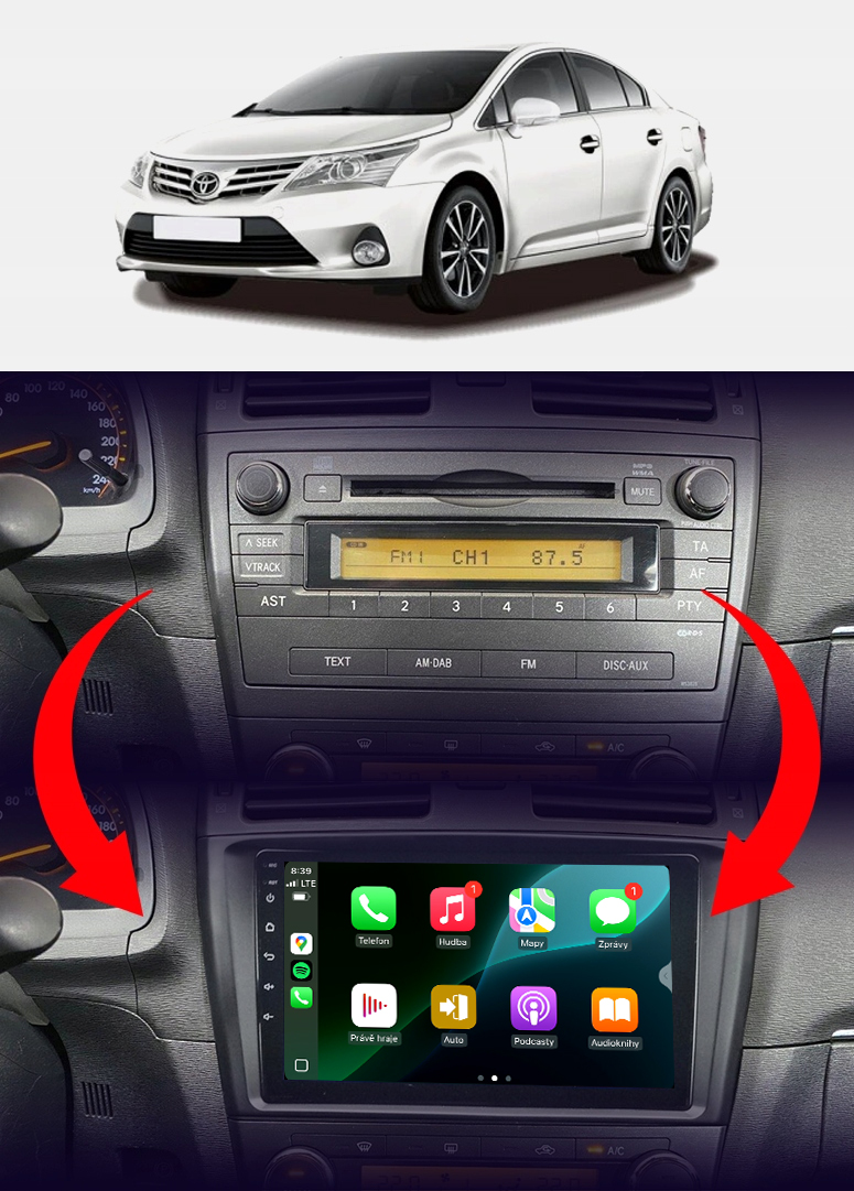 Rádio určené a plne prispôsobené na používanie vo vozidle TOYOTA AVENSIS 3 III 2009-2015