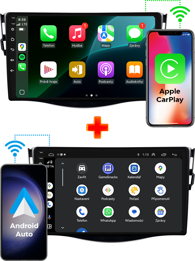 ✔️ Android Auto a Apple CarPlay – prístup k aplikáciám ako WhatsApp, Messenger, Spotify, YouTube, Deezer, Amazon Music