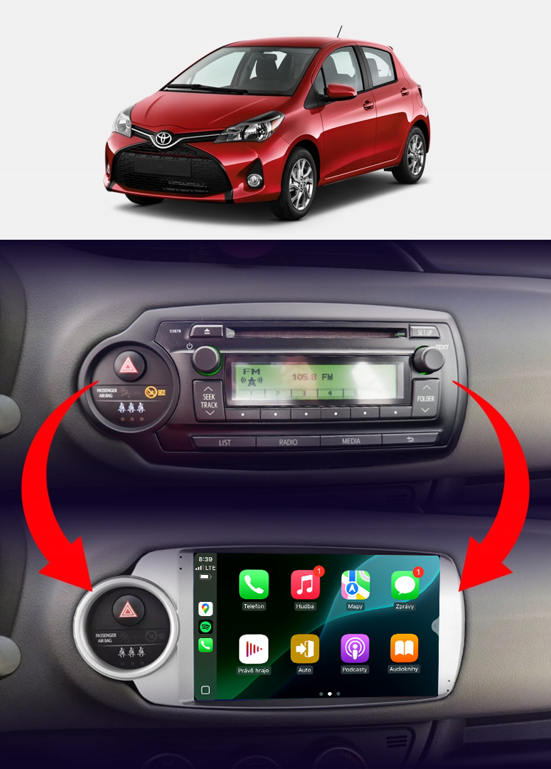 Rádio určené a plne prispôsobené na používanie vo vozidle TOYOTA YARIS 3 2011-2020 SILVER