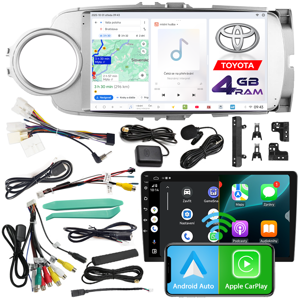 AUTORÁDIO NCS D9 TOYOTA YARIS 3 2011-2020 SILVER ANDROID NAVIGÁCIA 4GB LTE