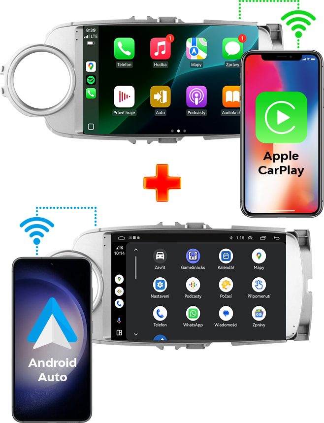 ✔️ Android Auto a Apple CarPlay – prístup k aplikáciám ako WhatsApp, Messenger, Spotify, YouTube, Deezer, Amazon Music