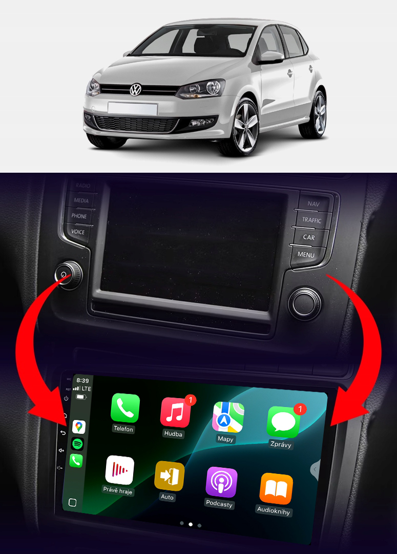 Rádio určené a plne prispôsobené na používanie vo vozidle VOLKSWAGEN POLO 5 V 2009-2017
