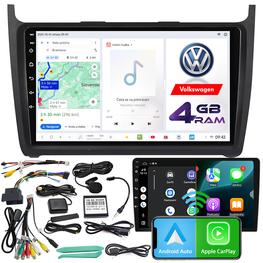 AUTORÁDIO NCS D9 VOLKSWAGEN POLO 5 V 2009-2017 ANDROID NAVIGÁCIA 4GB LTE