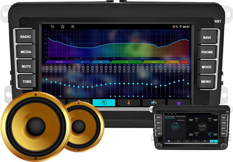 ✔️ Intuitívne nastavenie balansu (ľavá/pravá strana) a faderu (predok/ zadok) – presné rozloženie zvuku v interiéri vozidla