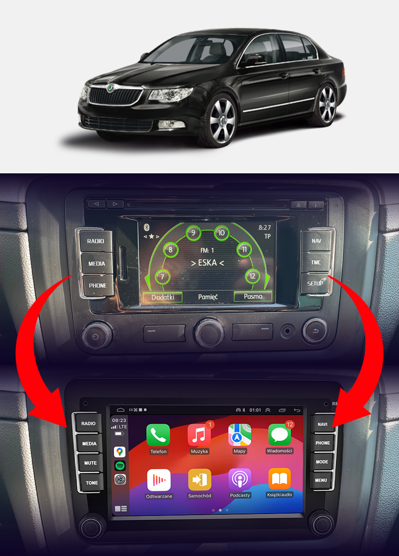 Dedikované rádio značky NCS, prispôsobené pre model SUPERB II 2 2008-2015. Moderný procesor a 4 GB rýchlej pamäte RAM zaručujú plynulý a stabilný chod.