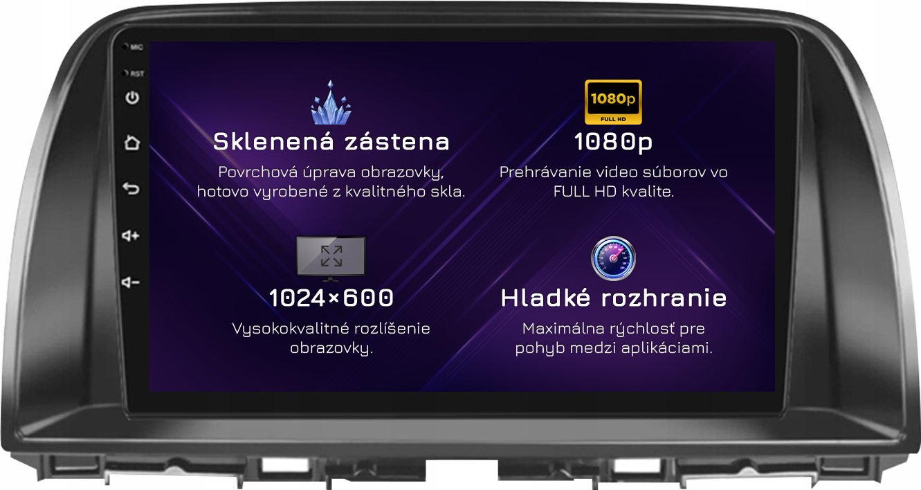 ⚠️ Rozlíšenie: 1024px x 600px = Širokouhlý Super VGA. Najobľúbenejší štandard zobrazenia pre špičkové rádiá. Videá sa prehrávajú v HD kvalite.